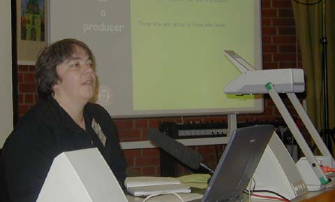 Die Vorträge knüpften nahtlos daran an. Don Passey von der Lancaster University sprach über Kriterien für guten Multimedia-Unterricht. Es komme vor allen Dingen darauf an, so Passey, dass man sich über die eigenen Unterrichtsziele Klarheit verschaffe. Ausgehend von verschiedenen Stufen der Wissenbehandlung: Aneignung, Zusammenfassung, Verstehen, Analyse, Synthese und Evaluation, müsse man sich im Vorfeld überlegen, auf welchen Niveau man die Kinder mit PC und Internet arbeiten lasse. Die Mitte zwischen Über- und Unterforderung ist nicht immer einfach zu finden. Gelingt dies aber, so würden die Kinder nicht nur zusätzliches Wissen mit nach Hause nehmen, sondern auch mehr Selbstwertgefühl durch erlebte Kompetenz. Passey wies aber auch auf offene Fragen hin. Wie zum Beispiel können die Lernergebnisse langfristig gespeichert und zugänglich gemacht werden. Ein Aufgabenheft könne man jederzeit aufschlagen. Viele Kinder aber hätten nicht jederzeit Zugang zum Computer.