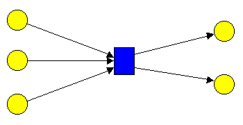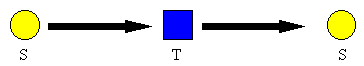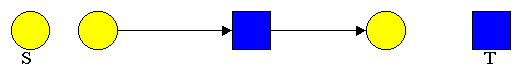 einfaches Petri-Netz mit zwei Stellen und einer Transition