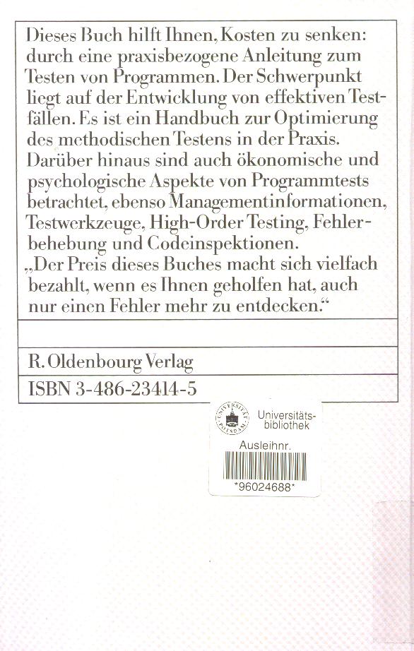 | Myers, G. J.: | Methodisches Testen von Programmen. Oldenbourg Verlag