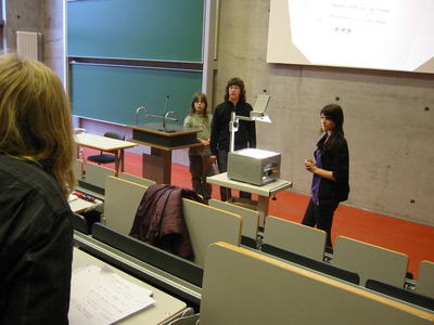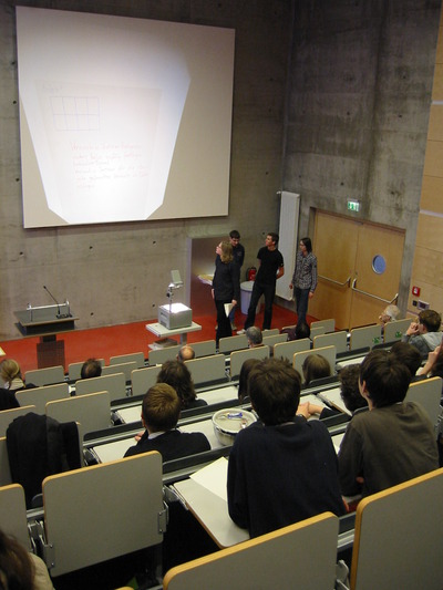 Schließlich stellten die einzelnen Gruppenmitglieder in einem kurzen Vortrag jeweils einen Teilaspekt des Gruppenergebnisses dar und stellten sich den kritischen Fragen der anderen TeilnehmerInnen und der Jury.