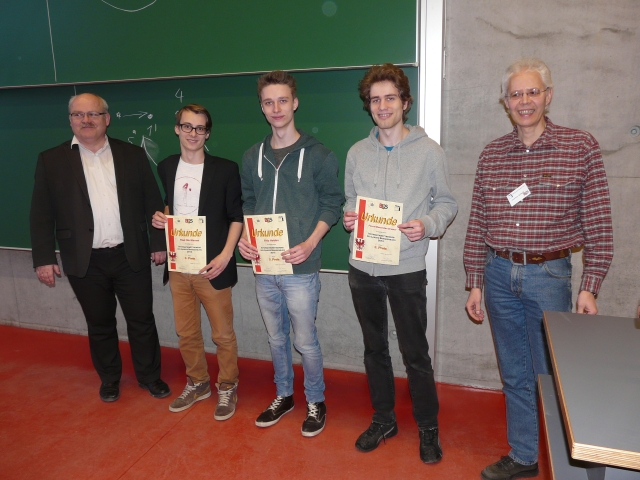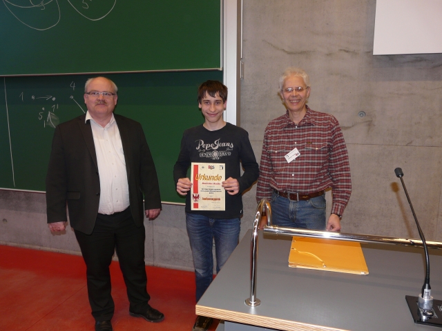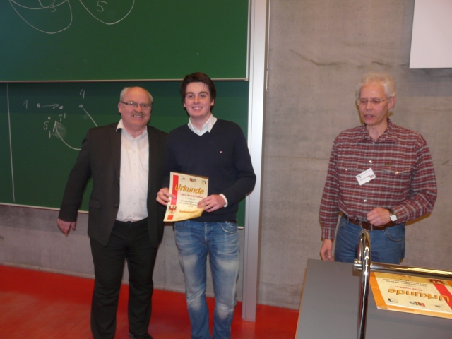 Bei der abschließenden Siegerehrung wurden die besten Teilnehmer durch Herrn Prof. Dr. Schwill, dem Lehrstuhlinhaber Didaktik der Informatik, Herrn Toman, Vorsitzender des BLiS, sowie im Namen des Ministeriums für Bildung, Jugend und Sport (MBJS) von Herrn Pohl ausgezeichnet.