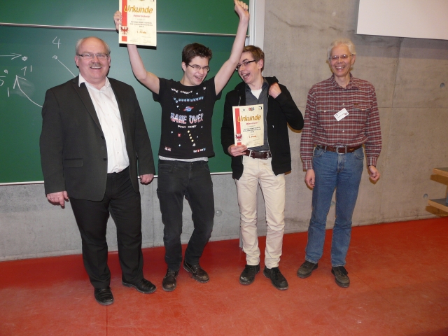 Es wurden zwei erste Preise, fünf zweite Preise und drei dritte Preise sowie zwei Anerkennungspreise vergeben. Einen ersten Preis verdienten Milan Gruner und Daniel Schmitz. Der Sonderpreis der Ministerin für Bildung, Jugend und Sport des Landes Brandenburg für besonders herausragende Leistungen ging an Robert Winkler, der als Schüler einer achten Klasse ähnlich gute Ergebnisse erzielte, wie die besten Teilnehmer aus elften und zwölften Klassen! Sowohl Matthias Döpmann als auch Daniel Schmitz errangen bereits beim Informatikwettbewerb 2012 Preise!