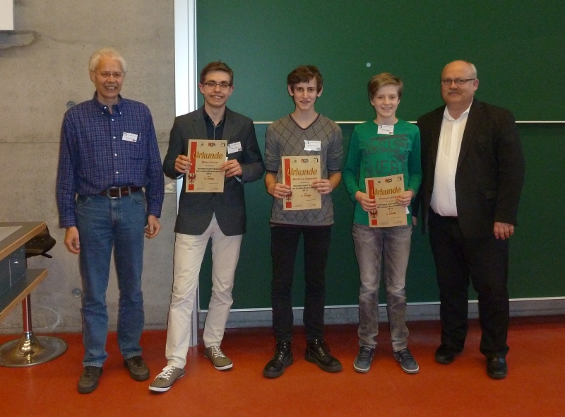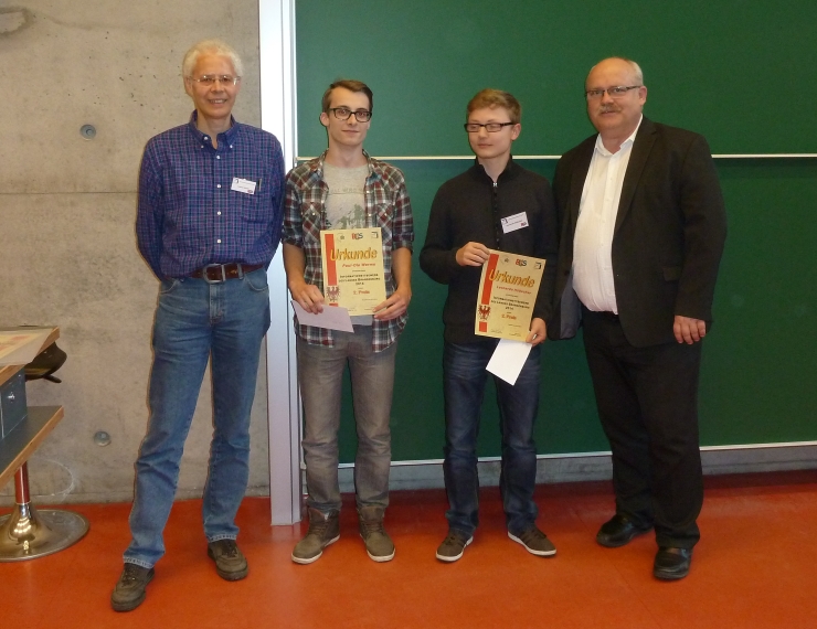 Bei der abschließenden Siegerehrung wurden die besten Teilnehmer durch Herrn Prof. Dr. Schwill, dem Lehrstuhlinhaber Didaktik der Informatik, Herrn Toman, Vorsitzender des BLiS, sowie im Namen des Ministeriums für Bildung, Jugend und Sport (MBJS) von Herrn Pohl ausgezeichnet.