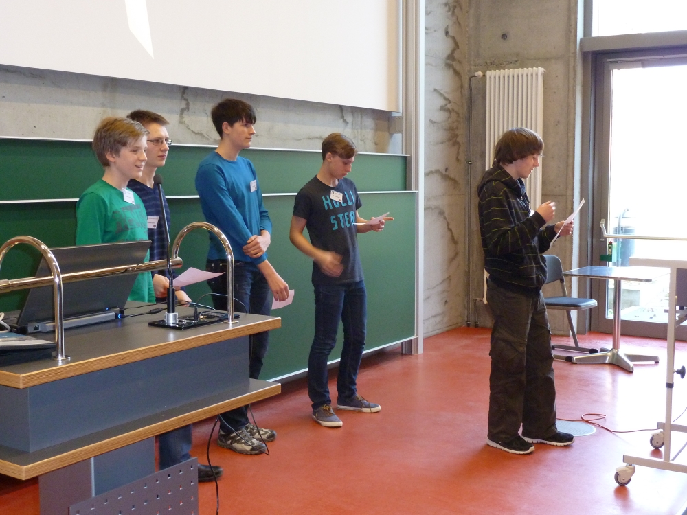 Schließlich stellten die einzelnen Gruppenmitglieder in einem kurzen Vortrag jeweils einen Teilaspekt des Gruppenergebnisses dar und stellten sich den kritischen Fragen der anderen TeilnehmerInnen und der Jury.