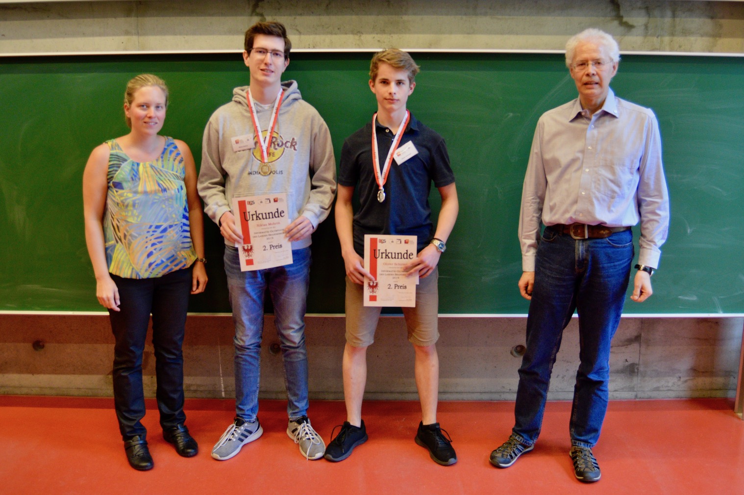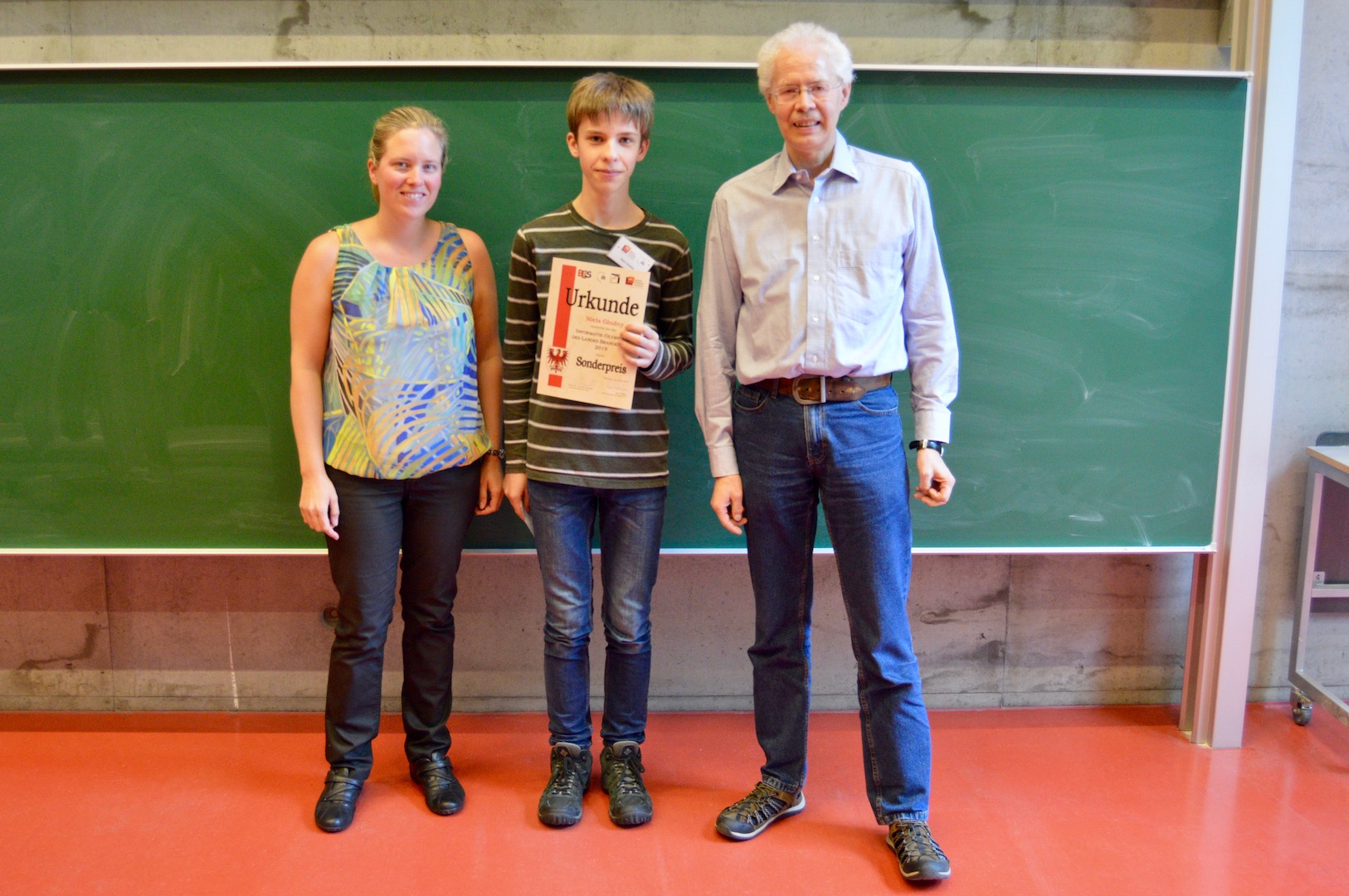 Bei der abschließenden Siegerehrung wurden die besten Teilnehmer durch Herrn Prof. Dr. Schwill, dem Lehrstuhlinhaber Didaktik der Informatik, sowie Frau Hüttemann, Organisatorin seitens des BLiS, ausgezeichnet.