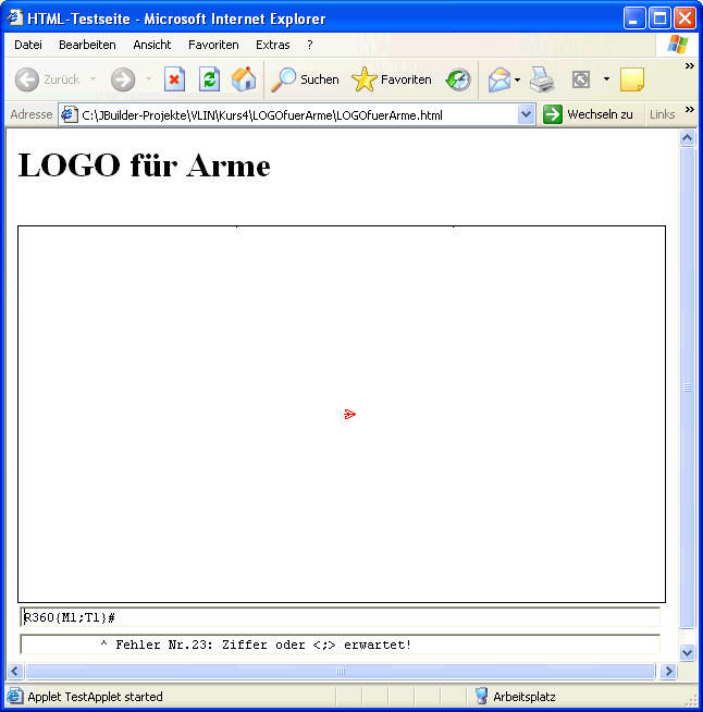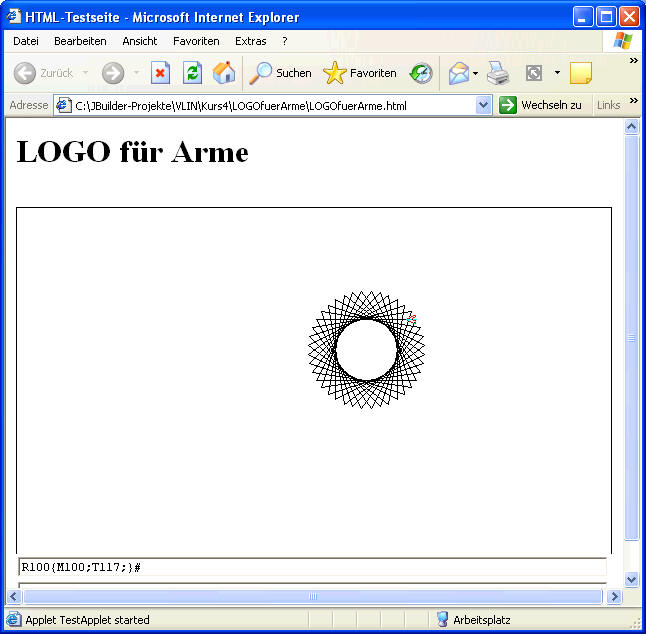 Die - meist vereinfachten - Konstrukte gängiger Programmiersprachen können geeignetes Übungsmaterial liefern, um das Parsen als Anwendung endlicher Automaten zu verstehen und zu üben. Man kann mit ihnen alleine allerdings nicht so recht etwas anfangen. Gesucht sind deshalb Beispiele ähnlicher Komplexität (oder Einfachheit - je nachdem wie man es sieht), die in sich sinnvolle Anwendungen bilden. Als ein solches Beispiel hat die einfache Grafiksprache LOGO für Arme sehr bewährt. Beachten wir, dass es m. E. Aufgabe des Informatikunterrichts ist, den Schülerinnen und Schülern zu einem gültigen Computermodell zu verhelfen, dann bietet ein solches kleines Projekt die Möglichkeit, über konstruktive Arbeit die Arbeitsweise eines Compilers bzw. Interpreters zu erfahren.