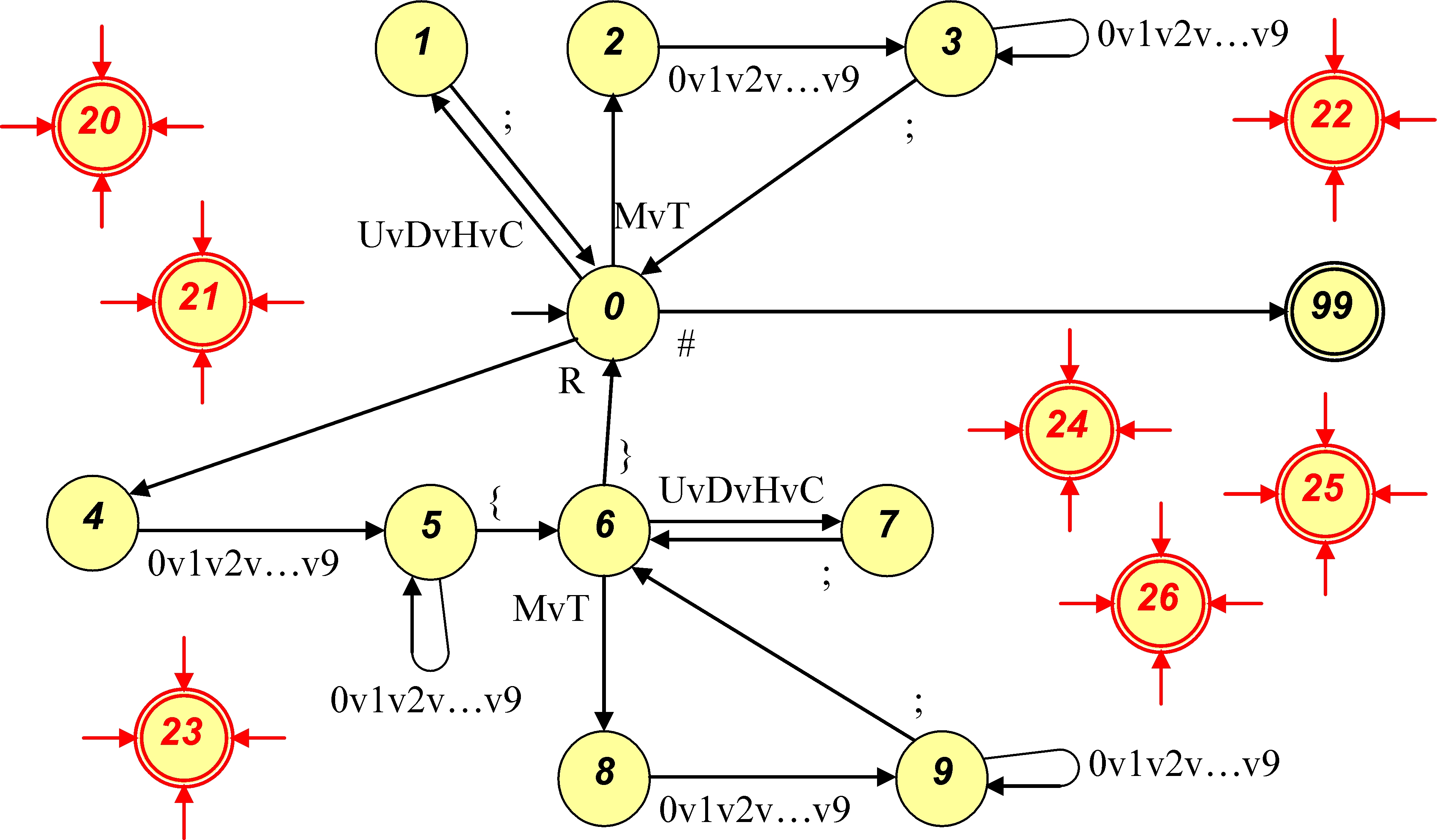 E = {U,D,H,C,M,T,R,0,1,2,3,4,5,6,7,8,9,{,},;,#}
