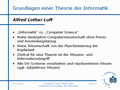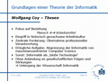 zu begründen ist. Er hebt insbesondere das Verständnis von Informatik als eine