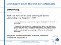 Verständnis der Disziplin an praktisch relevanter Theorie der Informatik. Die