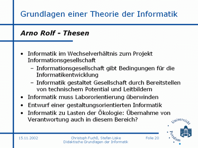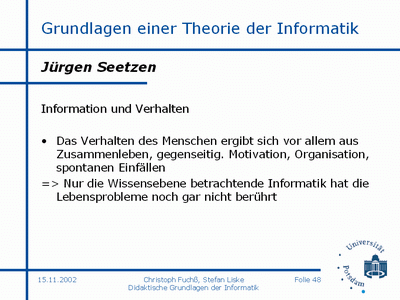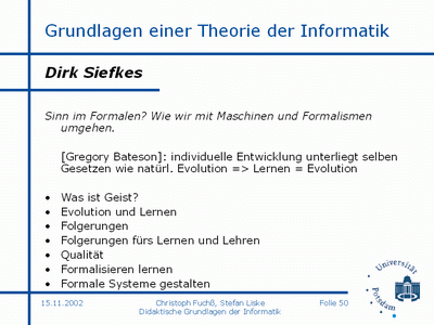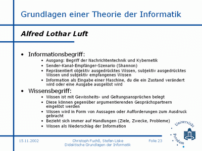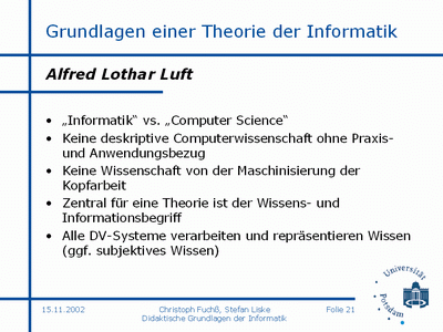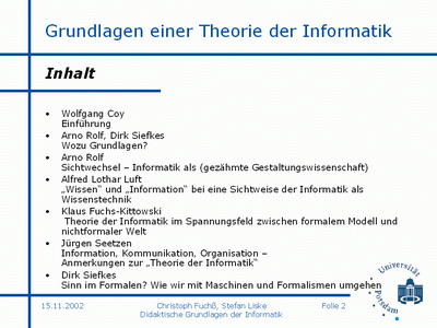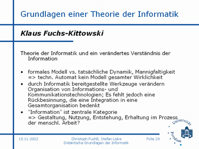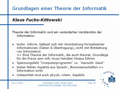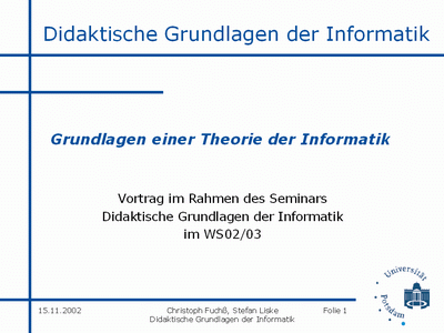 Grundlagen einer Theorie der Informatik - C. Fuchß/S. Liske - 2003 - 246 Dok.