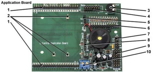 An das Application-Board können eine Reihe fertig aufgebauter Zusatzschaltungen bzw.-geräte direkt und polungssicher angeschlossen werden. Damit ist es möglich, viele einfache Anwendungen schnell und sicher aufzubauen. Es eignet sich damit in hervorragender Art und Weise dazu, die Schüler einführend mit den Möglichkeiten der C-Control-Unit und den Grundlagen ihrer Programmierung vertraut zu machen.