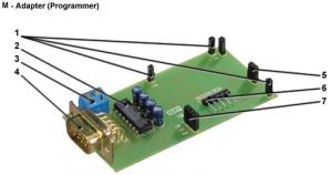 Da die M-Unit (48 mm x 41 mm) keine RS 232-Schnittstelle hat, wird zu seiner Programmierung der M-Unit-Adapter benötigt. Die M-Unit wird dazu lediglich auf den Adapter aufgesteckt. Der Adapter enthält alle zur Kommunikation zwischen M-Unit und PC über die RS232-Schnittstelle notwendigen Bauteile.