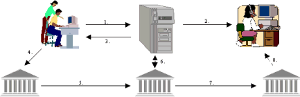 Bezahlung per KundenkontoEinführungDas Bezahlen per Kundenkonto ist ein schon etabliertes Verfahren, um im Internet Handel zu treiben. Dabei müssen für Kunden und Händler entsprechende Konten bei einer Verwaltungsstelle eingerichtet sein. Der Kunde kann dann Waren vom Händler beziehen und belastet damit sein Konto. Zum jeweiligen Abrechnungszeitpunkt muß der Kunde dann sein Konto begleichen und der Händler erhält daraufhin sein Geld. Von diesen Systemen lassen sich zwei Gruppen herauskristallisieren. Das sind zum einen die Online-Anbieter und zum anderen die Internet-Marktplätze (Cyber-Malls).Vorgang der Bestellung/Bezahlung
