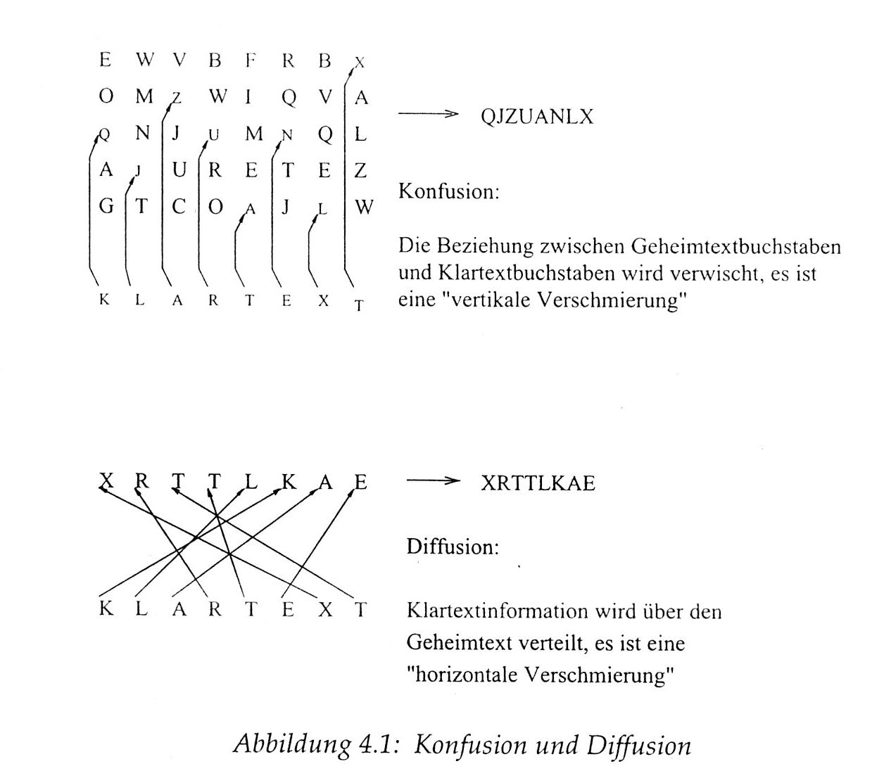 der Chiffrierung: Konfusion und Diffusion. Dabei bedeutet