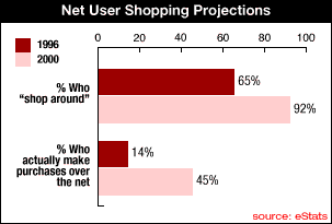 Das Internet bietet eine Reihe von Möglichkeiten und Diensten. Zu diesen gehören z.B. eMail,File-Transfer (FTP), World Wide Web (WWW) oder auch komplexere Dienste wie Internet-Telephonie. Ein weitere Trend ist der sogenannte eCommerce, also die konsequente Nutzung des Internets unter wirtschaftlichen Aspekten, welche z.B. wirtschaftliche Transaktionen, Handel, Börse etc. umfassen können. Die folgenden Abbildungen zeigen am Beispiel der "Online-Shoppings" das Wachstum auf diesem speziellen Sektor der Internet Nutzung. (Quelle: eMarketer)