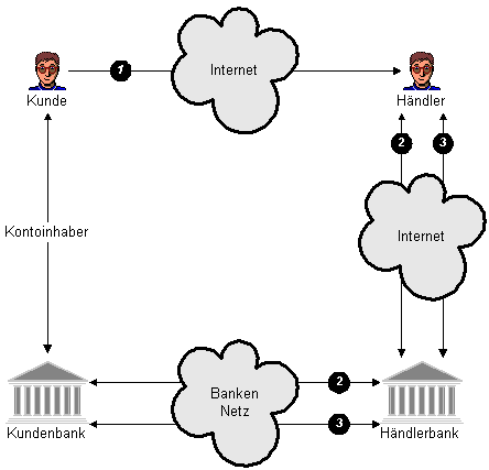 Der Ablauf eines Bezahlungsvorganges nach dem SET-Standard erfolgt in drei Schritten