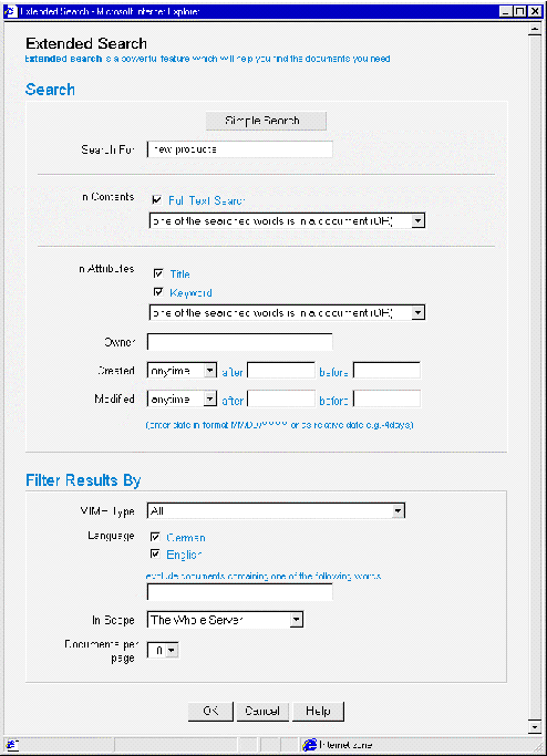 - In the Extended Search dialog box that appears (Figure 16), enter one or