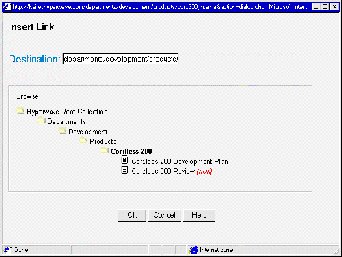 - In the Hyperwave HTML Editor, place your cursor at the point in the HTML