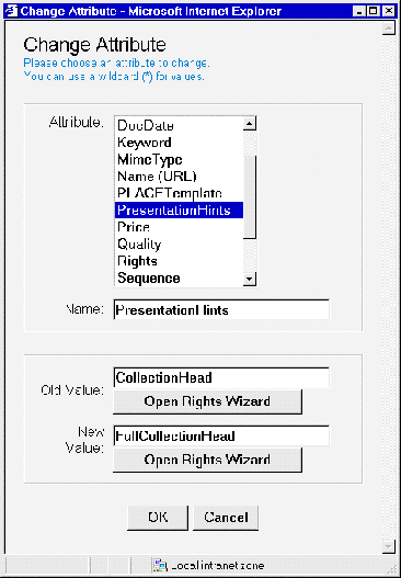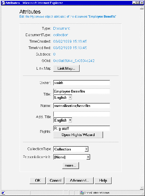 Attributes of a single document or collection are edited as follows: