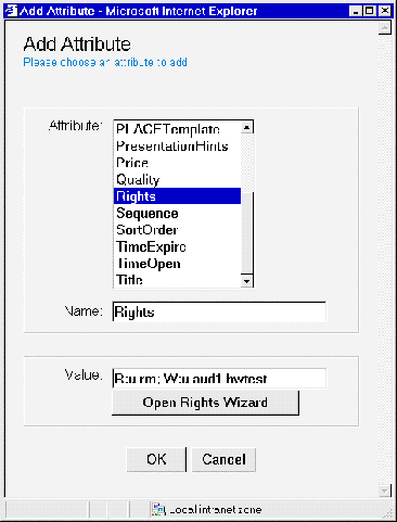 - To edit the Rights attributes simply, click on the Open Rights