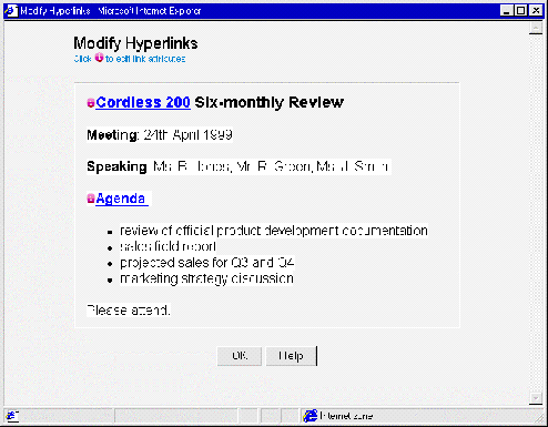 - Hyperlink: Lets you add, modify or delete hyperlinks in HTML text.