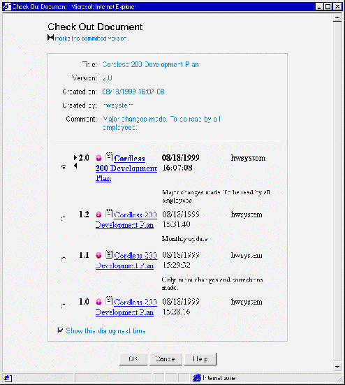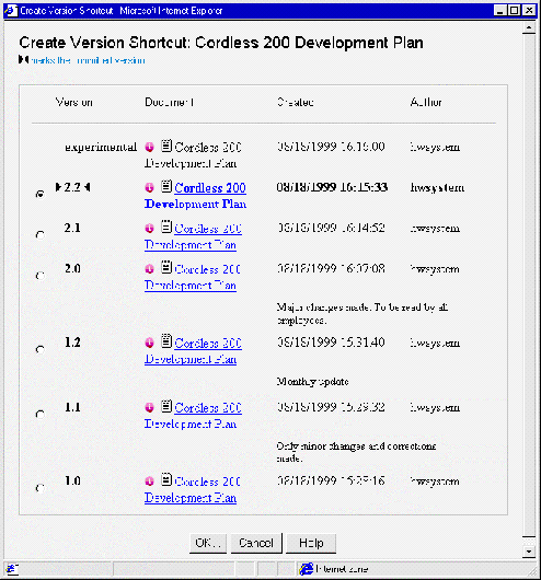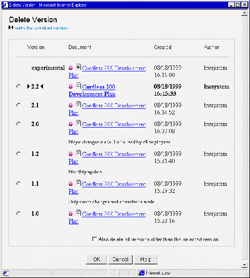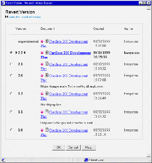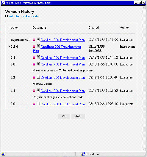 minor version numbers, the date they were saved and the user who saved them.