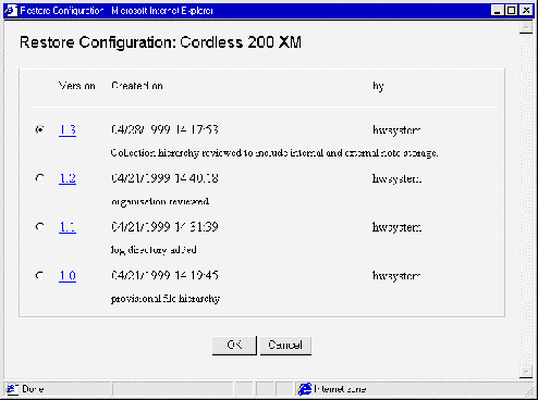 - Using the option buttons, select the configuration you wish to restore to