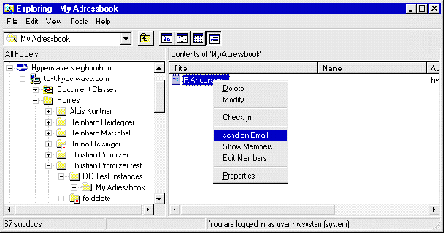 In Hyperwave Virtual Folders, context-sensitive menus (or pop-up menus) appear when you click with your right mouse button on an object. If document classes have been declared on the server, the pop-up menu will contain certain items that are dynamically generated, according to what was programmed in the document class.