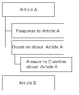 level below Article A. Replies to those replies appear in the next lower