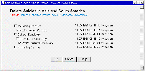 - Click on the OK button. The article or articles will be deleted.