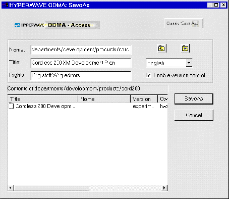 - Select File->Open. The Hyperwave ODMA Select File dialog