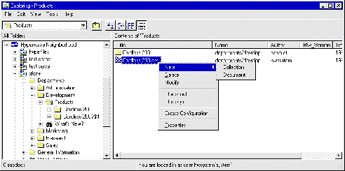 If you have the appropriate access on the server you also have the possibility to change objects on the server. You can use the commands available on the context-sensitive menu (see Figure 114) which appears when you click with the right mouse button on any object.